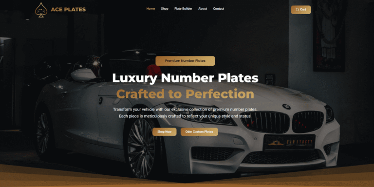 Homepage design for a luxury number plates brand with elegant layout and premium product presentation.